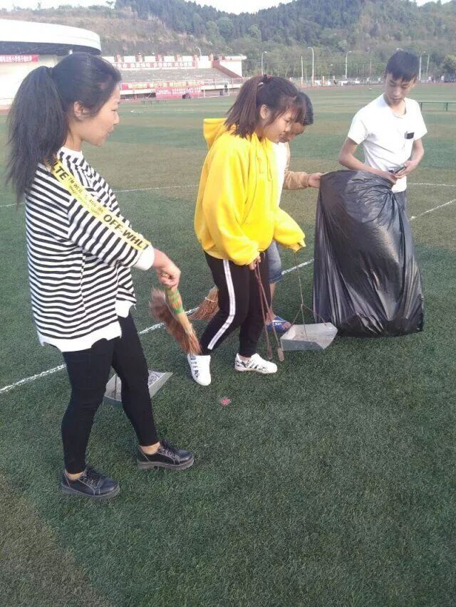 "9+3"学生在周末自主管理活动中义务清扫校园