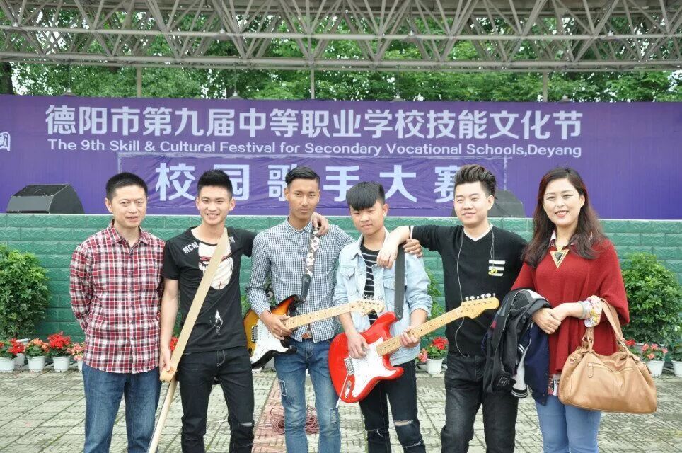 "9+3"学生沙子干(左三)和他的乐队参加德阳市第九届中等职业学校技能文化节