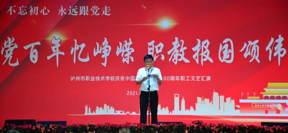 建党百年忆峥嵘,职教报国颂伟业。在中国共产党成立100周年之际,泸职校庆祝中国共产党成立100周年文艺汇演在学校多功能厅隆重举行。全校教职员工、离退休党员代表以及学生代表观看了演出。