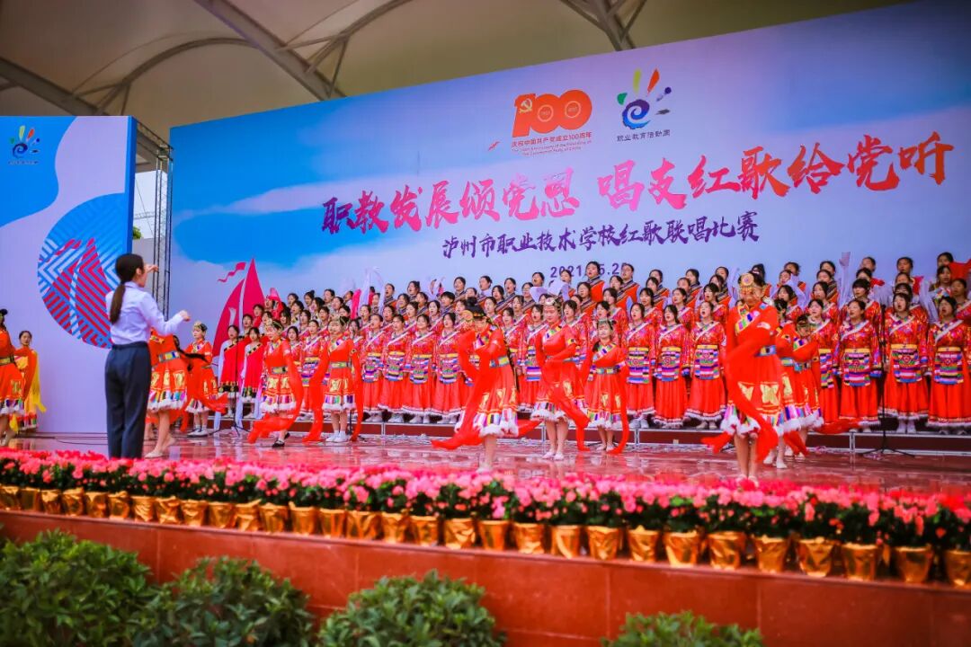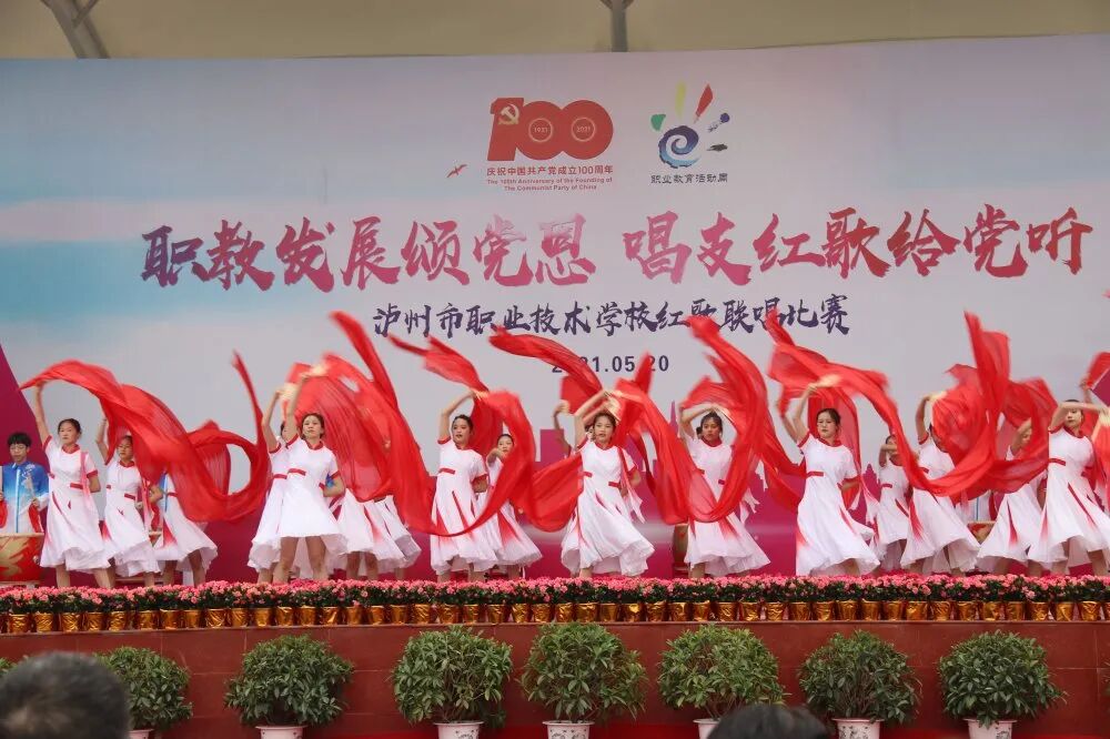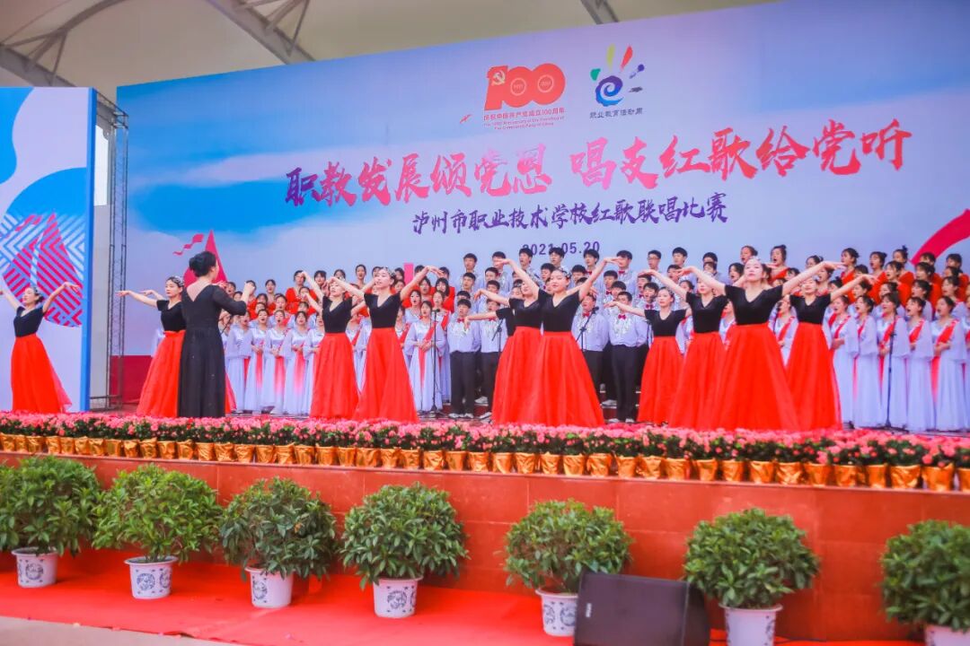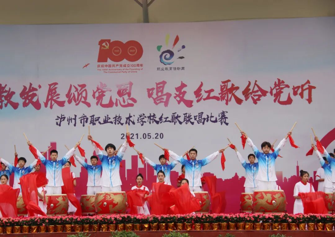 启动仪式结束后,举行了泸州市职业技术学校职教发展颂党恩,唱支红歌给党听红歌联唱比赛。本次比赛节目形式丰富多彩,有歌伴舞、经典诵读、合唱、器乐独奏等,师生们用真挚的情感唱响红色经典,回顾党的100年光辉历程,缅怀用鲜血和汗水创造辉煌的革命先烈,抒发对党的无限热爱和对祖国母亲的赤子之心。现场气氛热烈,歌声时而磅礴时而柔情,令听众们沉醉其中。