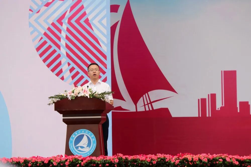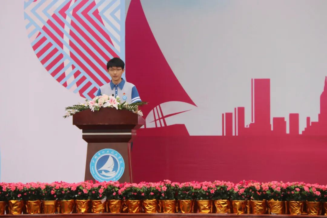 学生代表发言,号召同学们坚定理想信念,牢记崇德约礼、博闻竞技校训,自强不息、追求卓越,走技能成才、技能报国之路,在实现中华民族伟大复兴中国梦的进程中书写精彩人生。