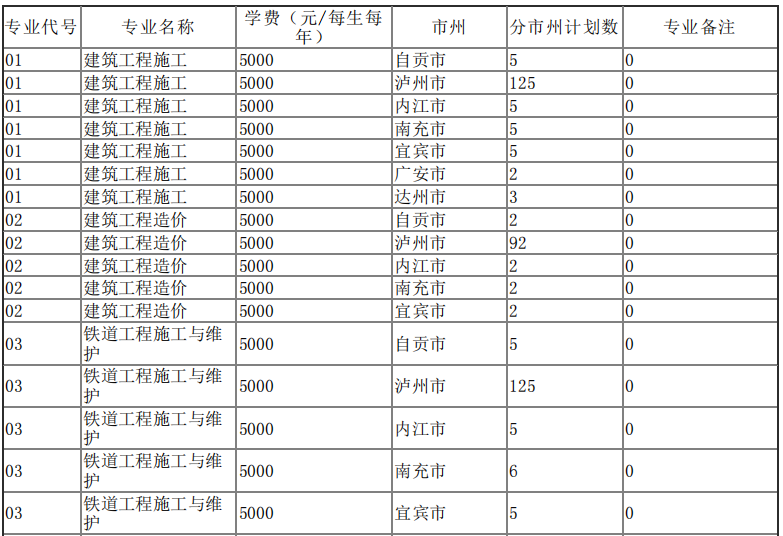 1、为了保障被江阳城建职业学校录取,考生在非师范志愿的第一学校志愿填报我校五年制招生代码:54003,选择专业代号:如01、02、03、04,分别代表不同专业;