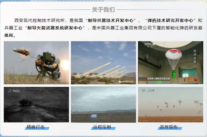 它地处古城西安的科技文化区——南郊电子城,毗邻高新技术开发区,是我国制导兵器研究开发中心和弹药技术研究开发中心,主要从事精确打击、远程压制、高效毁伤等领域战术导弹、制导弹药和灵巧弹药武器系统总体及主要部件的研制。