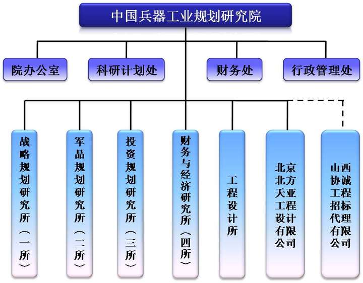 中国兵器工业规划研究院隶属于中国兵器工业集团公司,是以战略研究、投资咨询为主要业务的科研事业单位,是中国兵器工业集团公司从事发展战略研究和产业发展顶层设计研究、发展与改革研究、重大军民品能力建设项目立项论证以及可行性研究与评估、民爆工程设计咨询和武器装备动员研究的重要战略科研团队和支撑机构。
