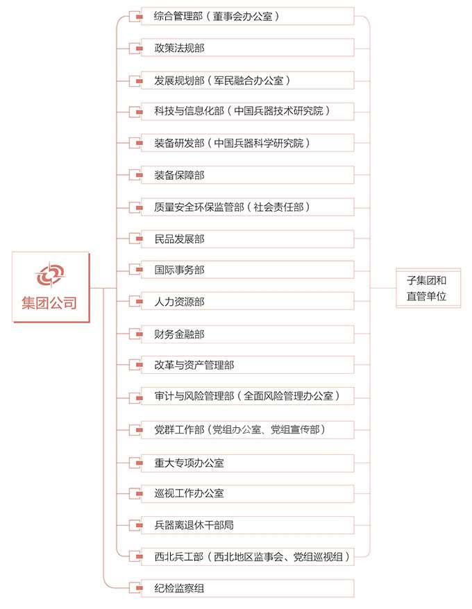 中国兵器工业集团有限公司是我军机械化、信息化、智能化装备发展的骨干,是全军毁伤打击的核心支撑,是现代化新型陆军体系作战能力科研制造的主体。总部位于北京市西城区三里河路44号。