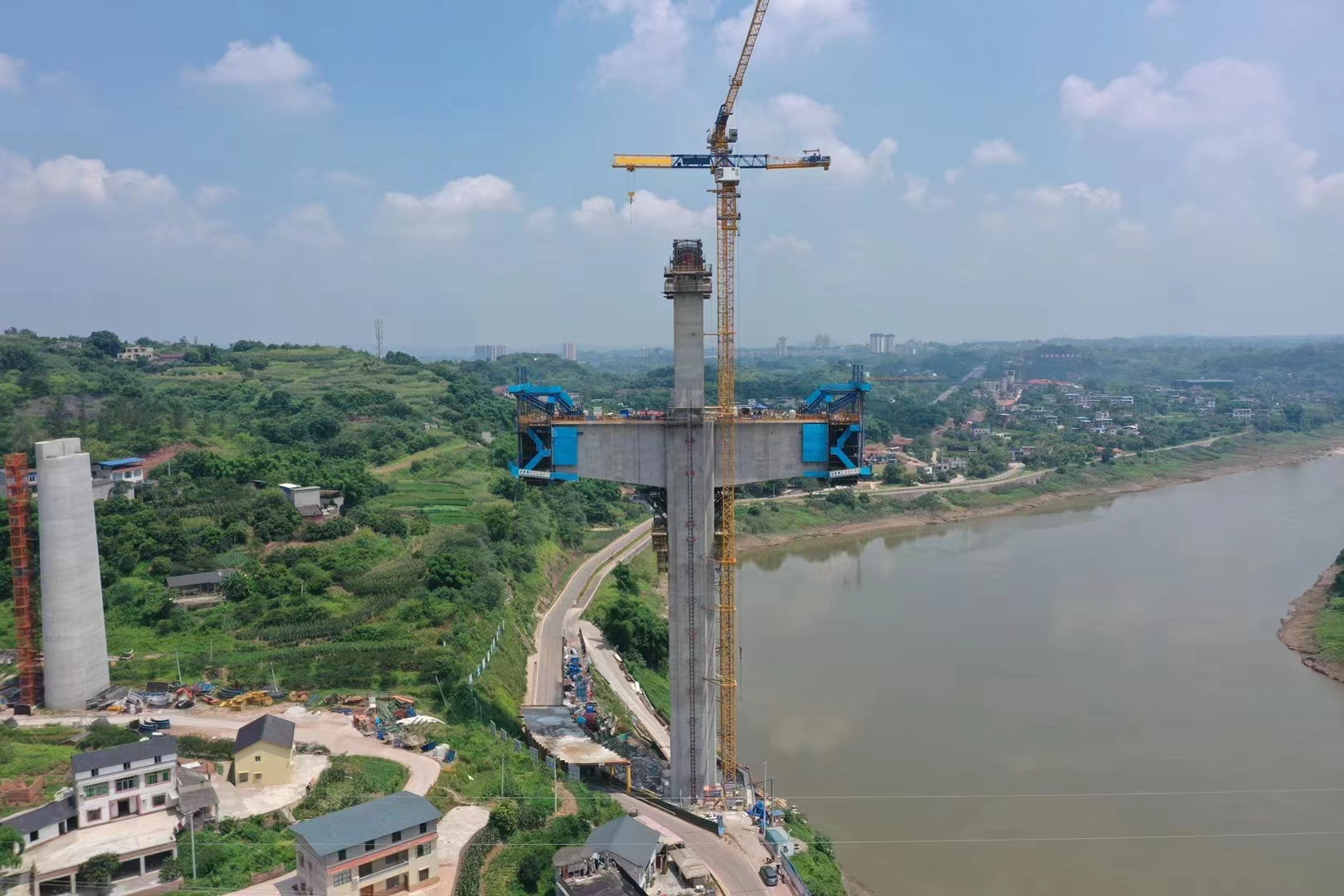 盛夏时节,烈日炎炎。渝昆高铁泸州段桥梁施工现场,到处一片繁忙景象,建设者们接续奋战、气势高昂。