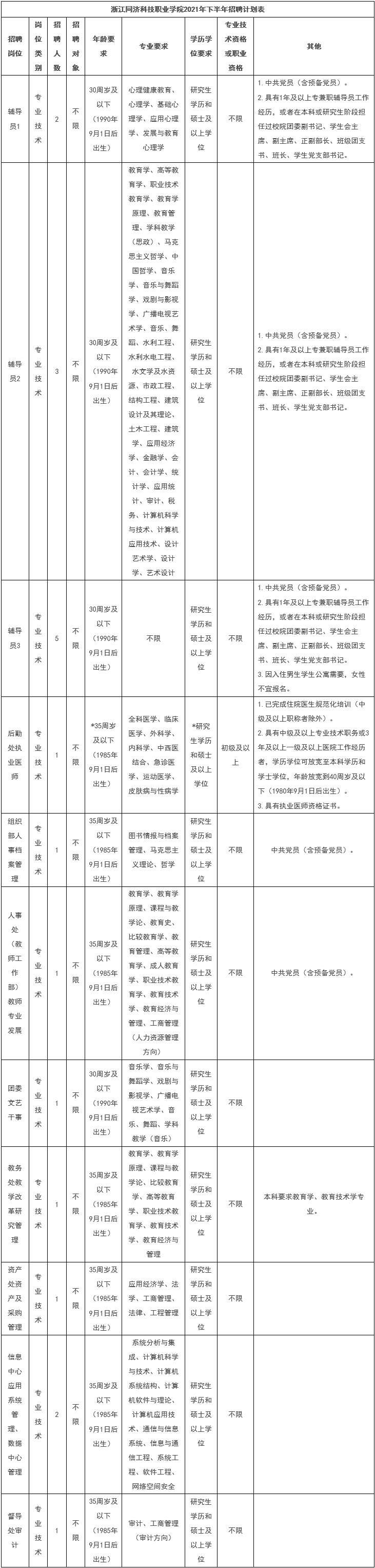2.浙江同济科技职业学校2021年下半年公开招聘人员公告