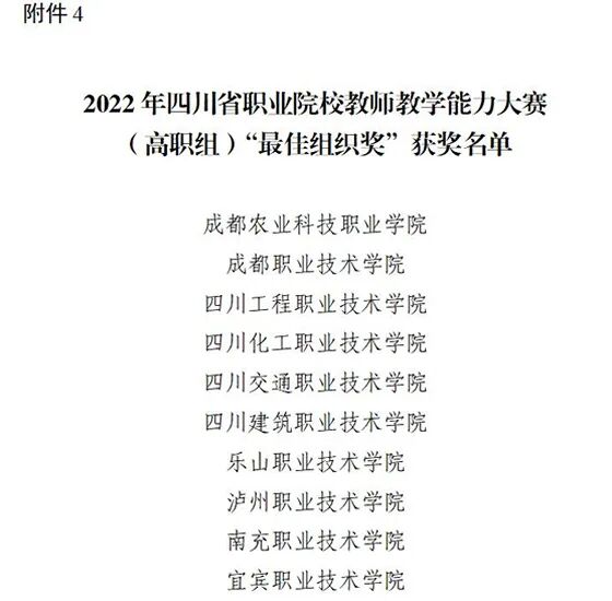 7月8日,四川省教育厅公示了2022年四川省职业院校教师教学能力大赛拟获奖名单,泸州职业技术学校获一等奖3项、二等奖3项、三等奖4项,一等奖获奖数量创历史新高,同时学校获最佳组织奖,为泸州职业技术学校双高建设添上了浓墨重彩的一笔。