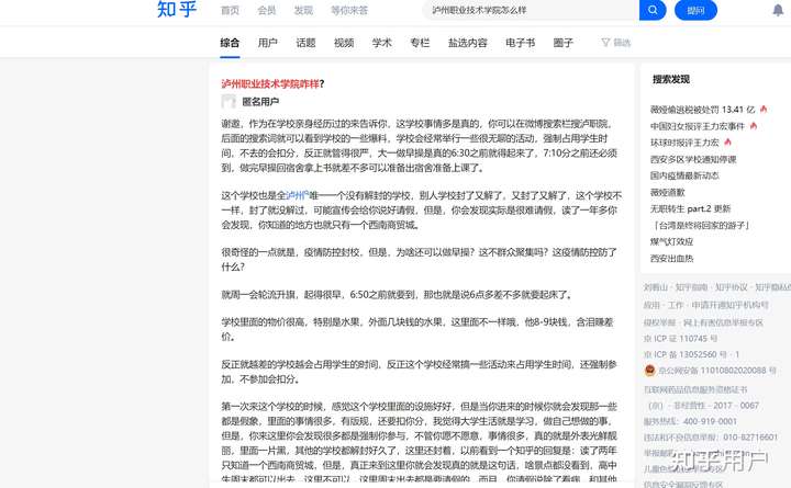 其他的有关爆料直接知乎上面搜索泸州职业技术学校怎么样就可以搜到。