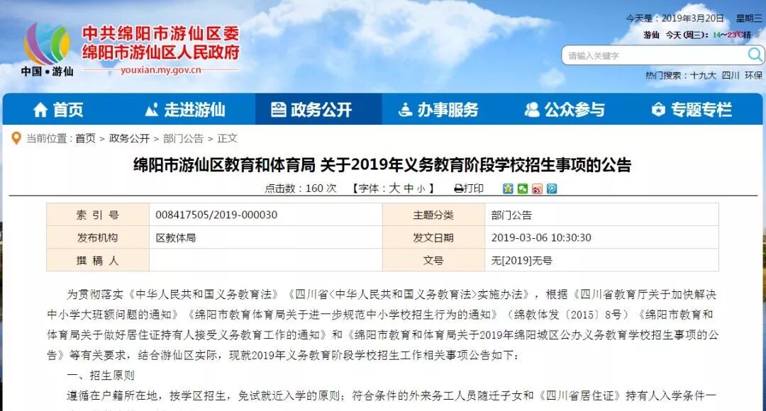 1.招生对象:2019年5月1日前取得游仙区辖区范围内《四川省居住证》需就读公办义务教育学校的适龄儿童少年。