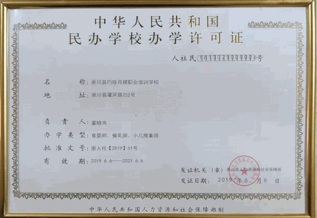 巧珍月嫂率先通过了国际标准体系ISO9001认证、以及ISO14001(环境管理体系认证)和OHSAS18001(职业健康安全管理体系认证)。通过多年深耕,巧珍月嫂在2019年6月6日获得淅川政府人力资源和社会劳动保障部批准,正式成为巧珍月嫂职业培训学校,在淅川人社局和民政部门的支持和帮助下,学校诚挚邀请您加入到月嫂这个队伍中来,学一技之长,挣万元工资!