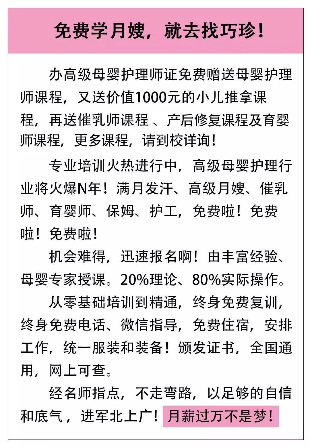 人到中年如何挑战稳定?月薪过万?巧珍月嫂职业培训学校是你不二的选择!只要你身体健康、初中以上文化,55周岁以内的女性,拿起电话联系我们,月薪过万不是梦!