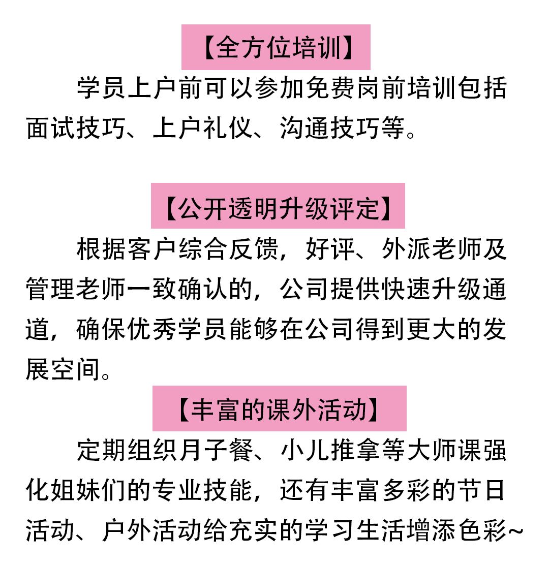 俗话说得好"金杯银杯不如老百姓的口碑。为满足市场需要,巧珍月嫂职业培训学校面向社会招募月嫂、育儿嫂、催乳师、小儿推拿学员,学员均可在公司接受正规培训后稳定上岗。