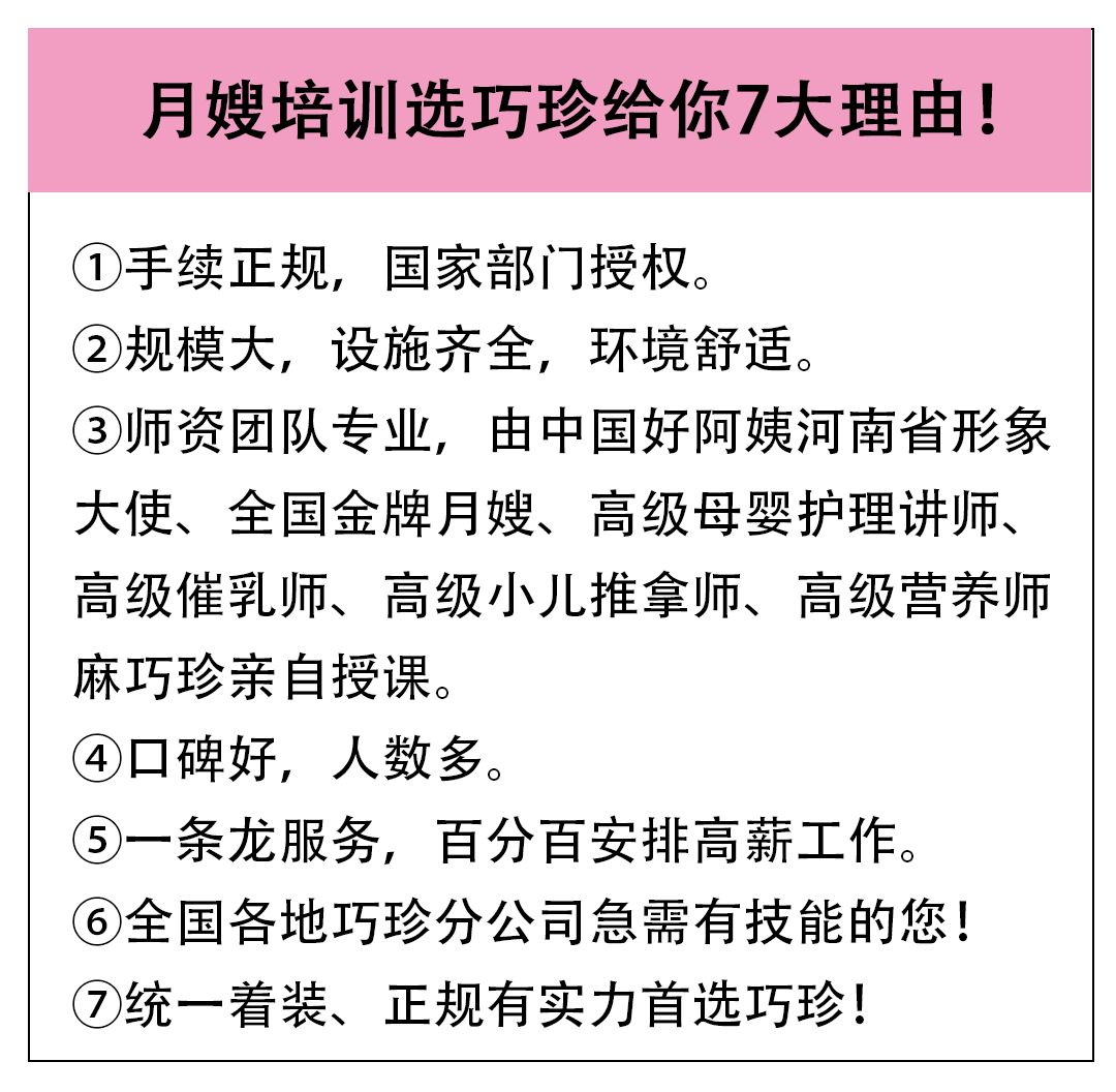 从幼儿专业技能培训,到月子餐培训,巧珍月嫂职业培训学校都能实实在在教给您,让您能在同行业中成为真正的技能高,工资高,公司福利待遇高的业界翘楚!