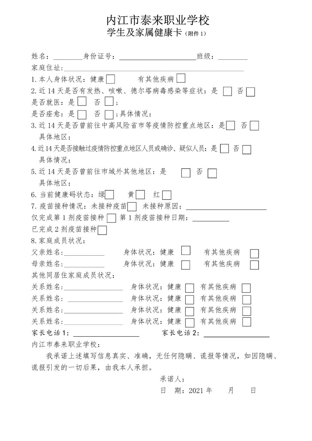 附件:1.《新型冠状病毒感染肺炎疫情防控返校承诺书》及《健康信息监测表》,下载后进行双面打印并填写。
