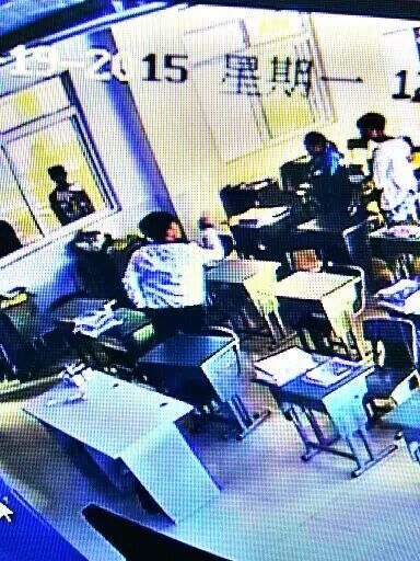 我们通过调取事发时的监控视频发现,中午放学过后几分钟,一青年男子走进了教室,进来后就直接找小艺,两人交谈了几句之后,该男子抓住小艺的头发,对小艺进行了殴打,随后又从后面摸出一把刀,捅伤了小艺。