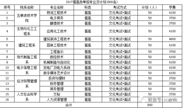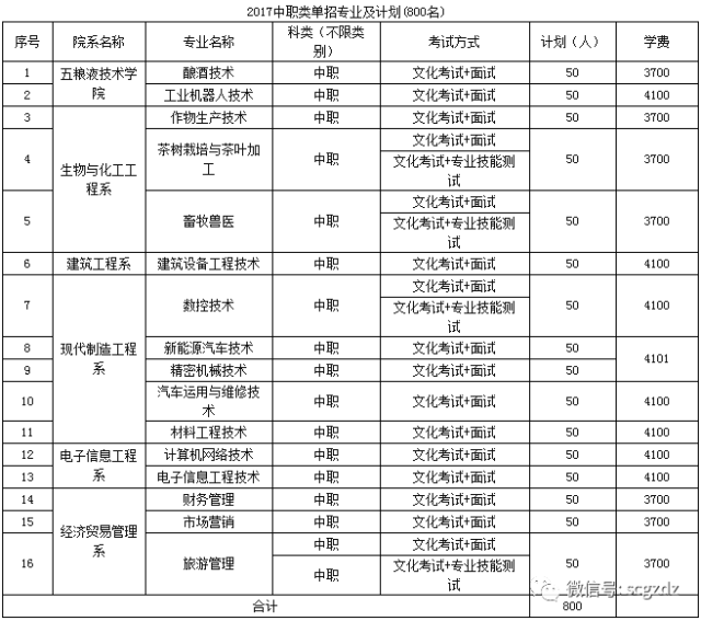 宜宾职业技术学校2017年单独招生总计划1600名,其中中职类计划800名,普通类计划800名。