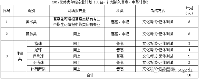 2、艺体特长测试依据为我院向社会公布的《2017年单独招生艺体特长测试大纲》。考生自备服装、道具、乐器、伴奏带、美术画具等,学校提供体育类测试需用的球类器材。