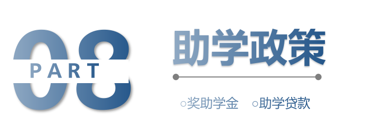 为奖励优秀学生和帮助贫困生顺利完成学业,学校根据国家规定设立了国家奖学金(8000元/人·年)、国家励志奖学金(5000元/人·年)、国家助学金(一档4400元/人·年,二档3300元/人·年,三档2200元/人·年)、优秀学生奖学金、三好学生、优秀学生干部等系列奖励制度,并颁发奖金和荣誉证书,记入学生档案。