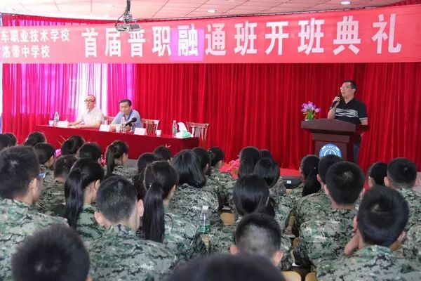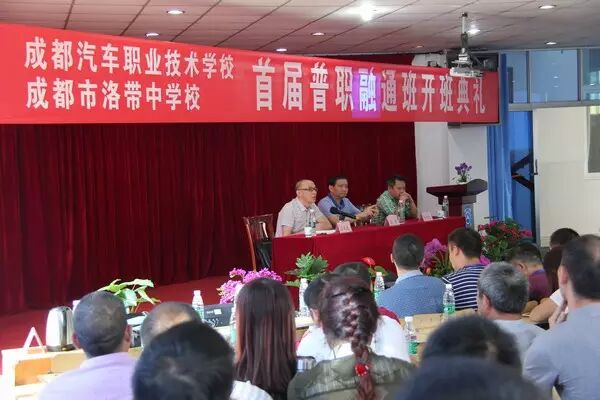 成都市龙泉驿区教育局基教二科科长高渝、成都市洛带中学校校长巫家成、成都汽车职业技术学校校长韦生键亲临现场,三个普职融通班的学生、家长及教师也参加了开班典礼。