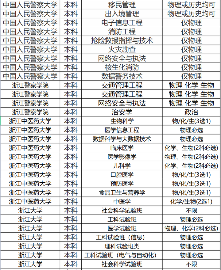 例如,警察基本上必选物理,医生必选生物,化学。小编查询了浙江师范大学招生计划:32类专业中理科必选的有13个,无限制12个,文理科均可选4个,文科必选仅有3个,这意味着,普通高中毕业的学生可以选择浙江师范大学32类中任何一个专业。