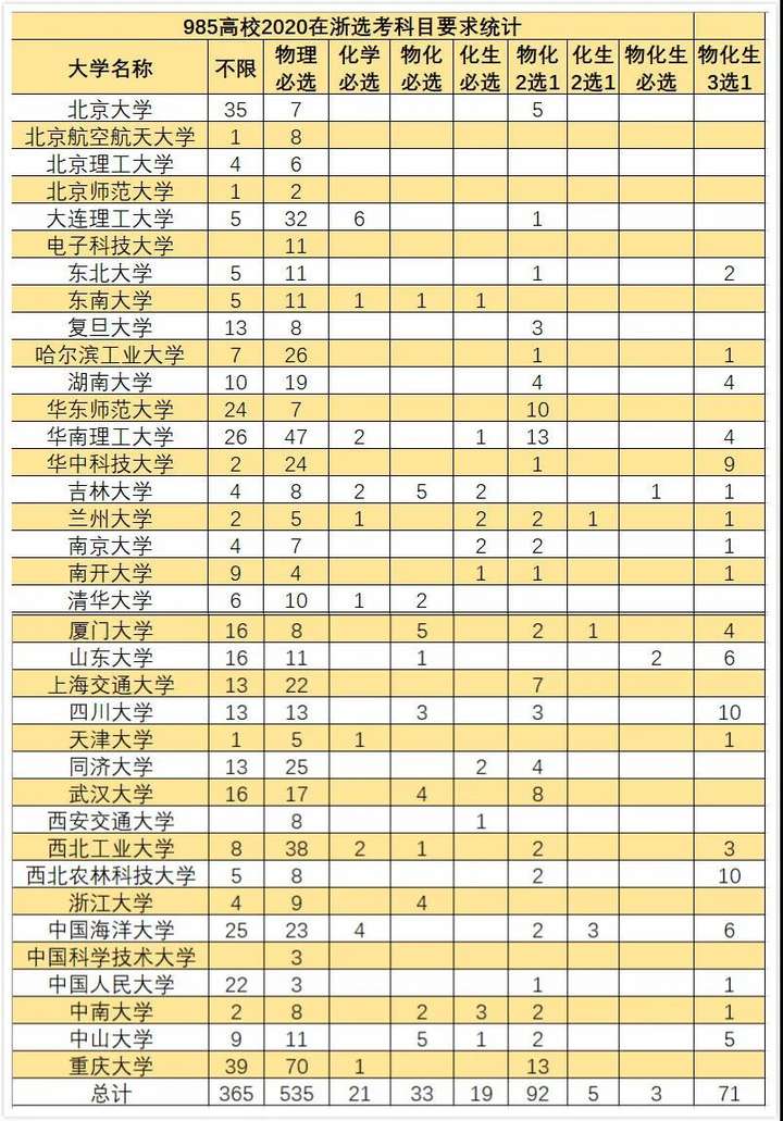 以下是985大学绝大部分都是理科特别是物理要求更高,如图所示: