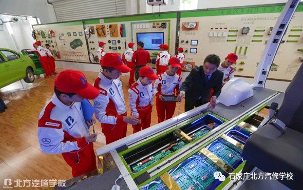 石家庄北方汽修学校配有专门的新能源汽车技术实训室以及新能源汽车设备,技能+学历服务双重教学模式,技术总监亲自执教能让学员具备良好的专业基础理论以及较强的汽车诊断、检测、维修能力和一定的汽车营销、美容养护车身修复能力,本校新能源技术专业面向汽车后服务市场,让学员在毕业之时能够掌握整车故障诊断与排除以及新能源汽车检修维护等工作!