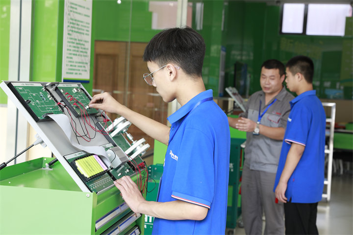 学生在校期间可学到混合动力汽车技术、纯电动汽车技术、新能源汽车充电技术的维护与故障诊断等专业知识,实训实战,学校还会定期邀请企业技术总监来校开展讲座,让学生提前了解新能源汽车企业的工作流程、岗位标准,了解更多的行业资讯,为将来的就业打下坚实的基础。