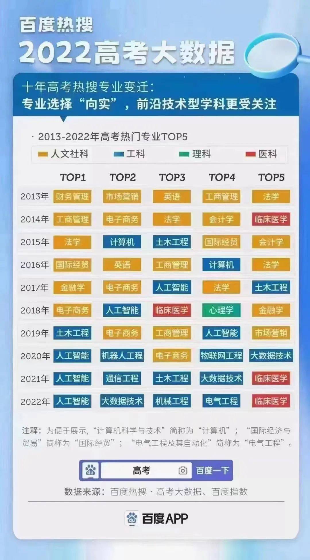 前一段时间,百度联合中国教育在线发布了《2022高考大数据》,可能是职业嗅觉,其中“2022年十大热度攀升专业”顿时吸引了东和酱的注意力。