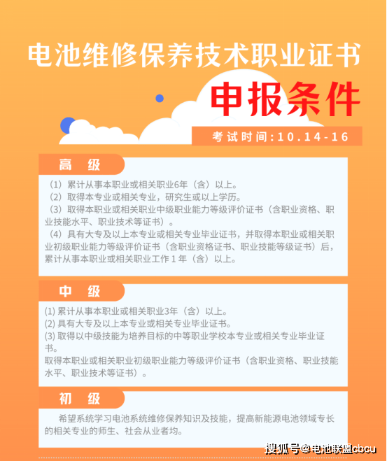 那“电池维修保养”(初、中、高级)职业技术证书有何报名条件呢?