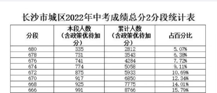 湖南长沙中考,总分720,考680分以上就有2812人。