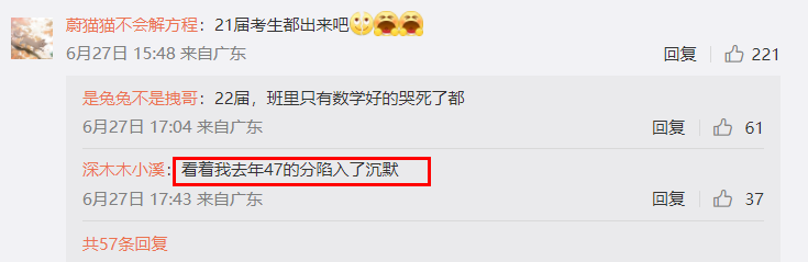 评论区里,21届考生因为去年考题难,和今年对比强烈,感叹生不逢时。