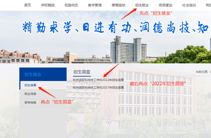 职业学校招生职业学校网上报名很简单,不复杂,1、想好你要报名的职业学校,2、在网上搜索学校官网,3、在学校的官网上找到其招生简章,就像杭州润匠科技技工学校”:看下图
