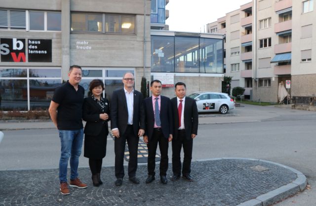 2017年10月龙泉驿区政府副区长刘埊、教育局副局长李长广、学校校长韦生键到瑞士SBW教肓集团签署了现代服务业人才培养合作备忘录。