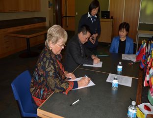 2014年澳洲詹姆斯库克大学(新加坡校区)合作办学签约仪式(左一詹姆斯库克大学中华区负责人),引入该校英语课程。2015年学校学前专业学生胡姊怡到该校新加坡校区留学,次年通过专升本考试,现就读于澳洲本部旅游管理专业。