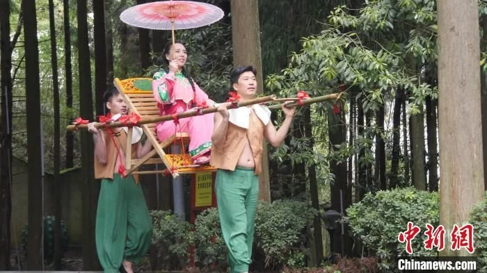 中新网成都3月3日电 题:“80后”非遗传承人江浪浪:让华蓥山滑竿抬幺妹“破浪出圈”