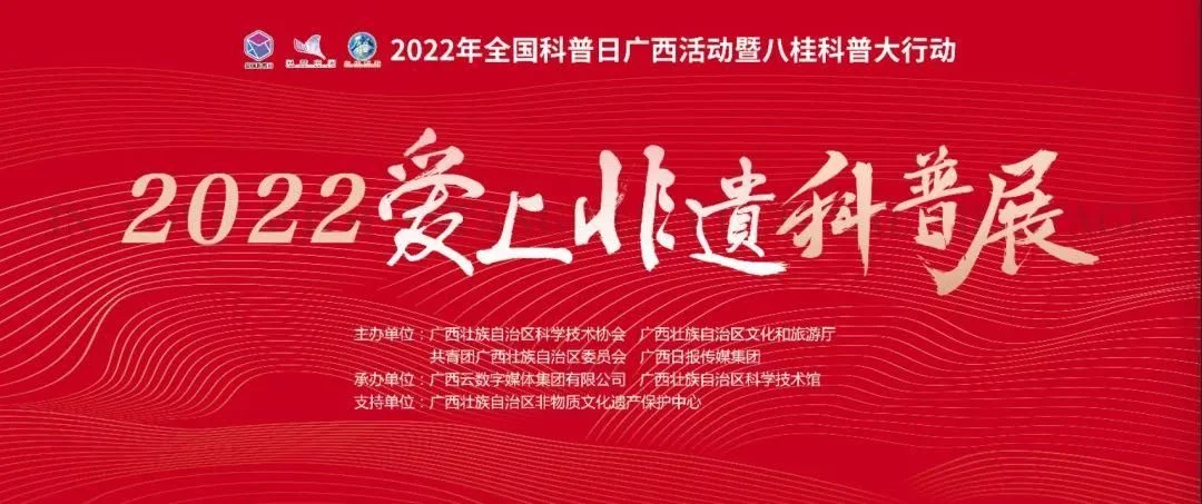 为加强非物质文化遗产的宣传教育和推广,有效拓展教育广度和深度,弘扬优秀文化,树立文化自信,由广西壮族自治区科学技术协会、广西壮族自治区文化和旅游厅、共青团广西壮族自治区委员会、广西日报传媒集团主办,广西云数字媒体集团、广西科技馆承办的“爱上非遗科普展”将于9月15日在广西科技馆开展。