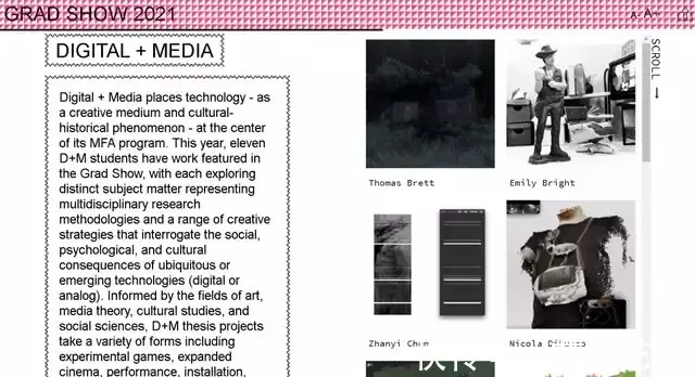 Digital+Media将技术作为一种创意媒介和文化历史现象。今年,D+M共展出了11名学生的毕设作品。每位同学都探索了不同主题,并代表了多学科研究方法和一系列创造策略。受到艺术、媒体理论、文化研究和社会科学领域的启发,D+M的毕设项目采用了包括实验游戏、扩展电影、表演、装置、声音、互动等在内的多种形式。更多项目及介绍可至学校官网查看,链接在文末~