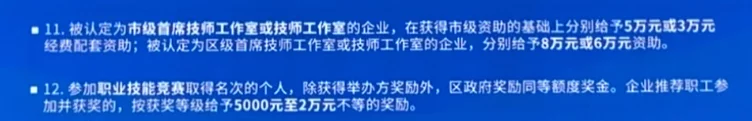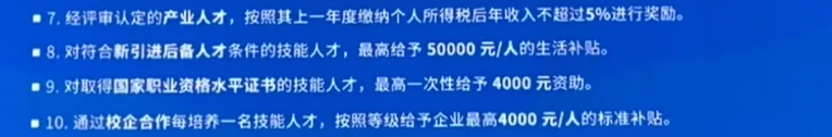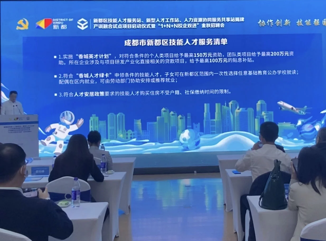 会上,新都区还对技能人才服务清单进行了发布。其中,对符合人才安居政策要求的技能人才购买住房不受户籍、社保缴纳时间的限制;对新引进到新都区工作的高技能人才,通过认定后给予最高3年内2000元/人每月的安家补贴;符合“香城人才绿卡”申领条件的技能人才,子女可在新都区范围内一次性选择任意基础教育公办学校就读,配偶在区内就业,可由劳动部门协助安排或对口就业等条款,引得在场技能人才和企业关注。