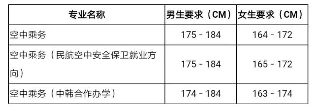 1﹒空中乘务、空中乘务(中韩合作办学)、空中乘务(民航空中安全保卫就业方向)专业要求: