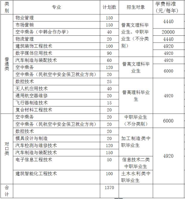 1.普通类、对口类单招专业及计划