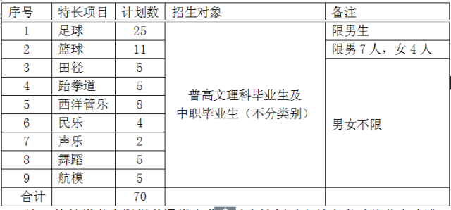 2.特长类项目与招生计划