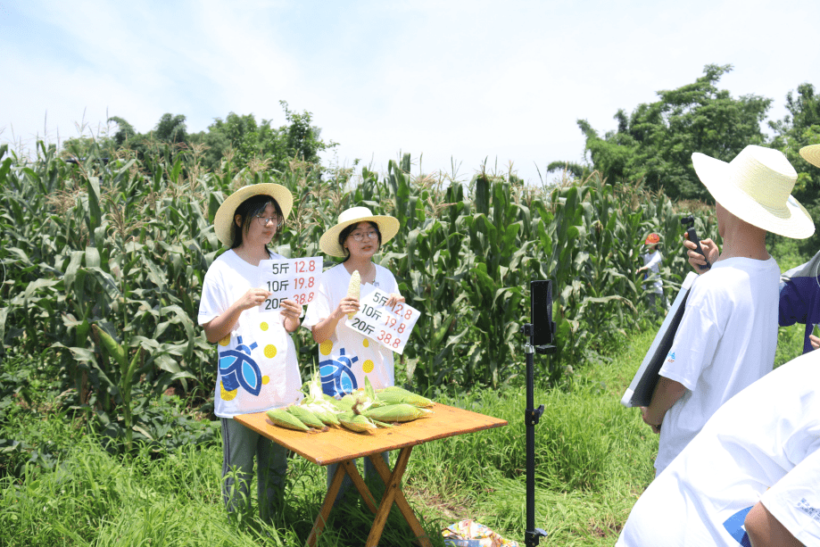 此次直播带货的玉米主要来自朱沱镇的一名80后返乡创业新农人罗勇和当地一位低保户王忠府。虽然顶着35度的高温,实践团成员们仍有条不紊的完成各自的工作,此次直播共计一个小时,共卖出玉米2000余斤。