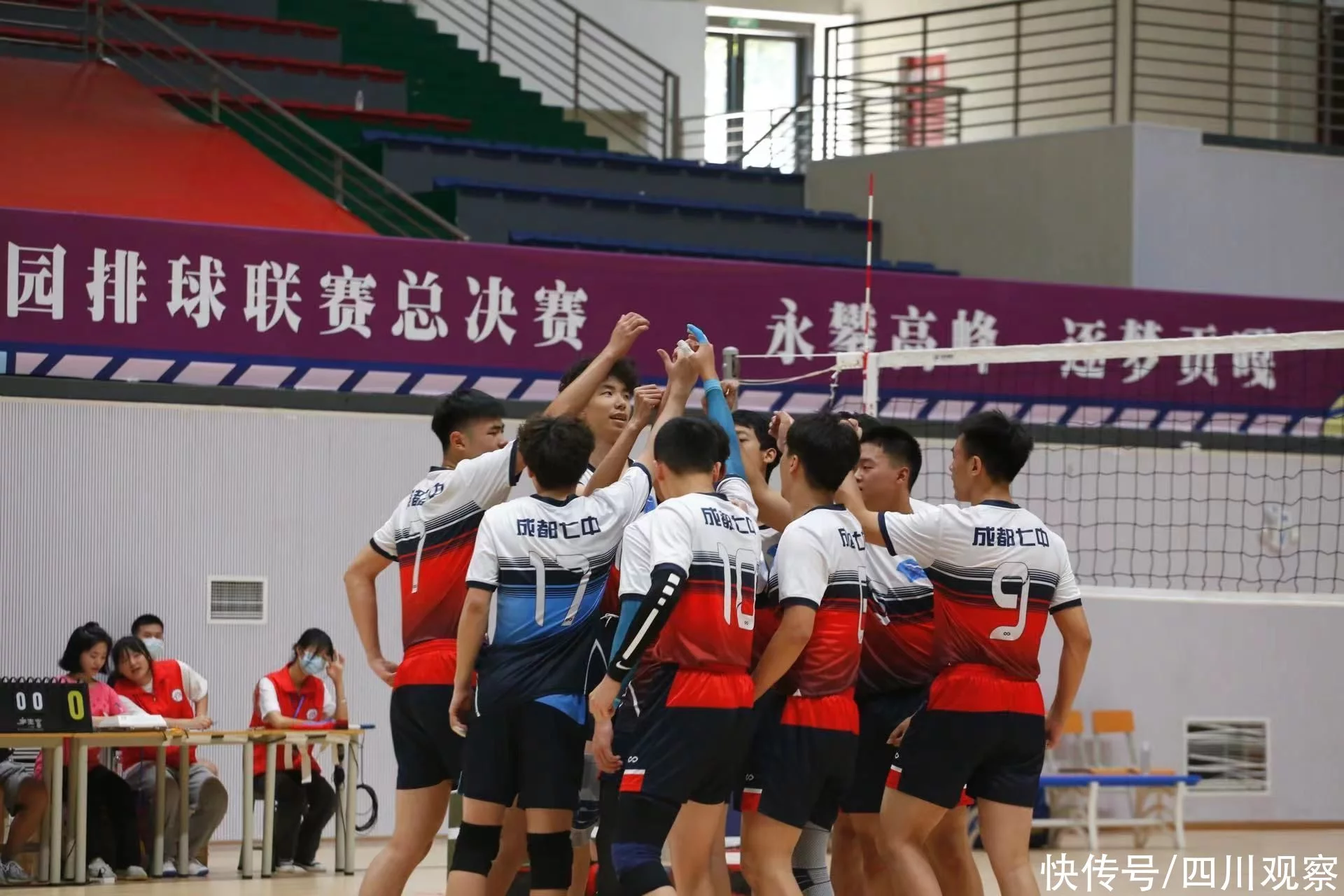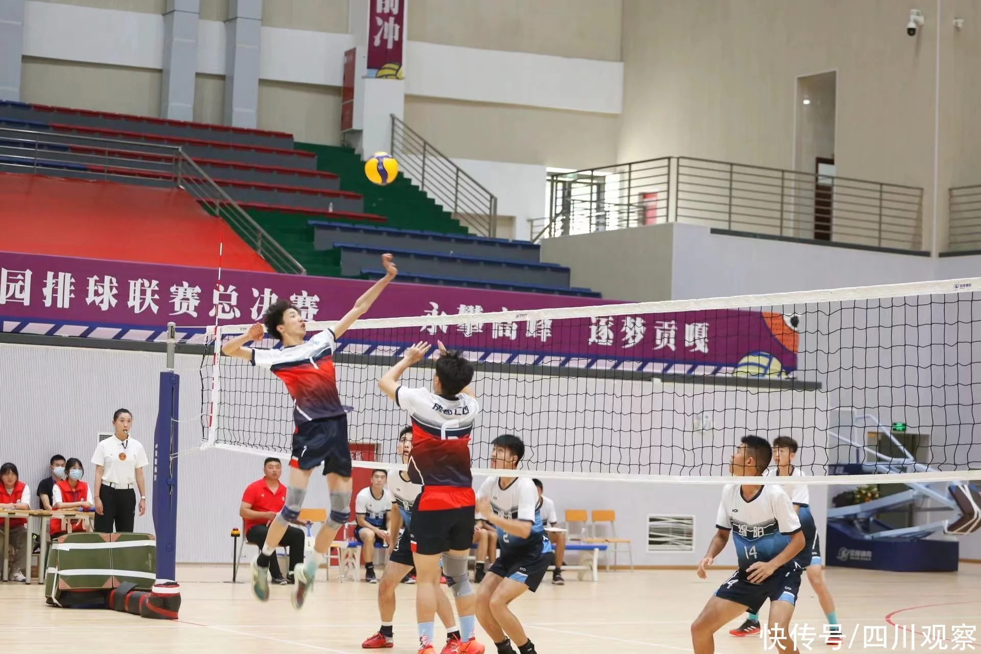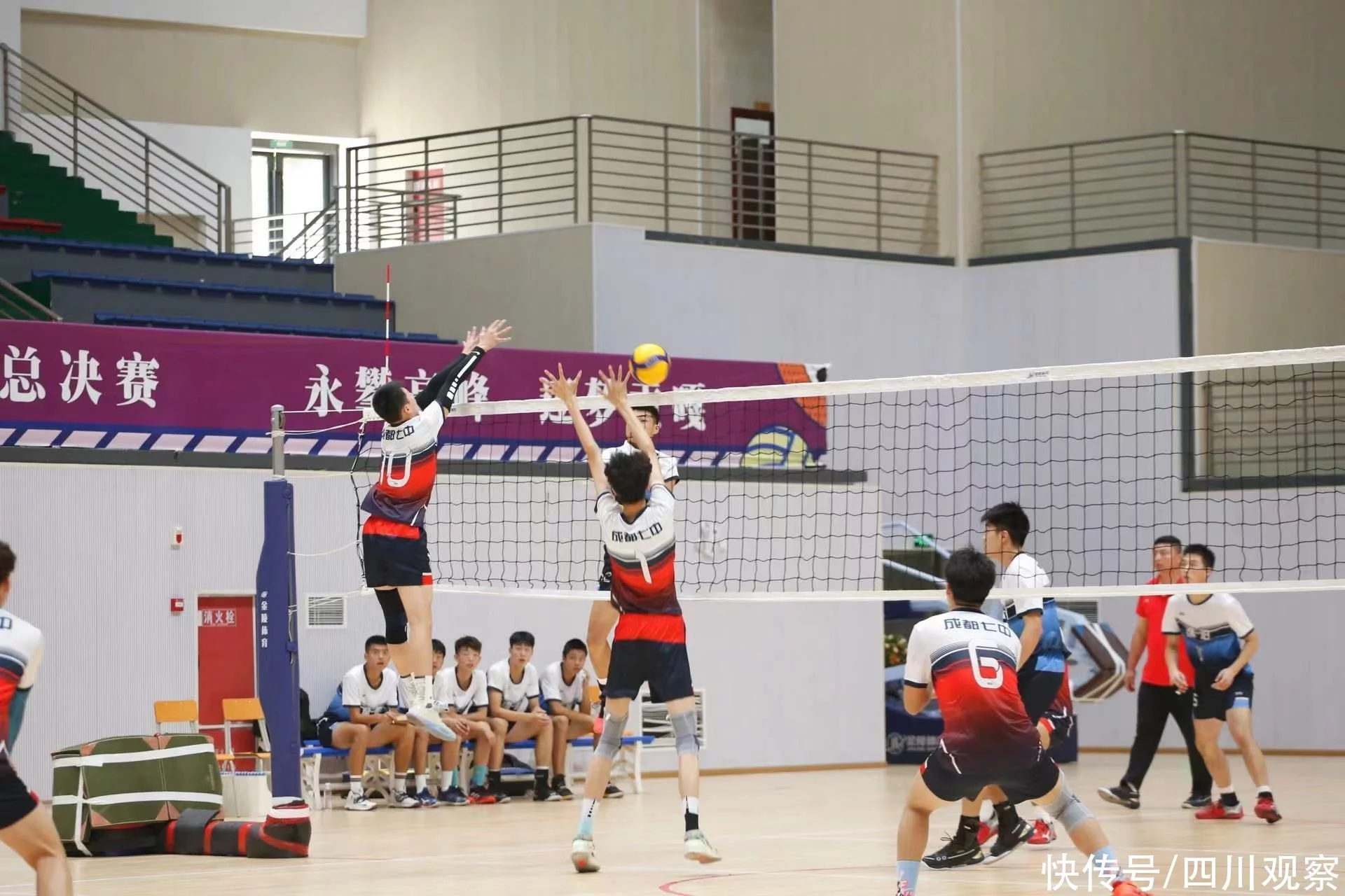 在泸州职业技术学校体育馆进行的男子组决赛中,成都市第七中学代表队和绵阳东辰国际学校代表队苦战三局,最终,成都市第七中学代表队凭借顽强的意志,2:1艰难战胜对手,获男子组冠军。与此同时,西南医科大学体育场进行的女子组决赛也同样扣人心弦,随着成都市郫都区第一中学6号队员的扣球出界,最终,资阳中学代表队凭借2∶0的比分,战胜对手成都市郫都区第一中学代表队,获女子组冠军。