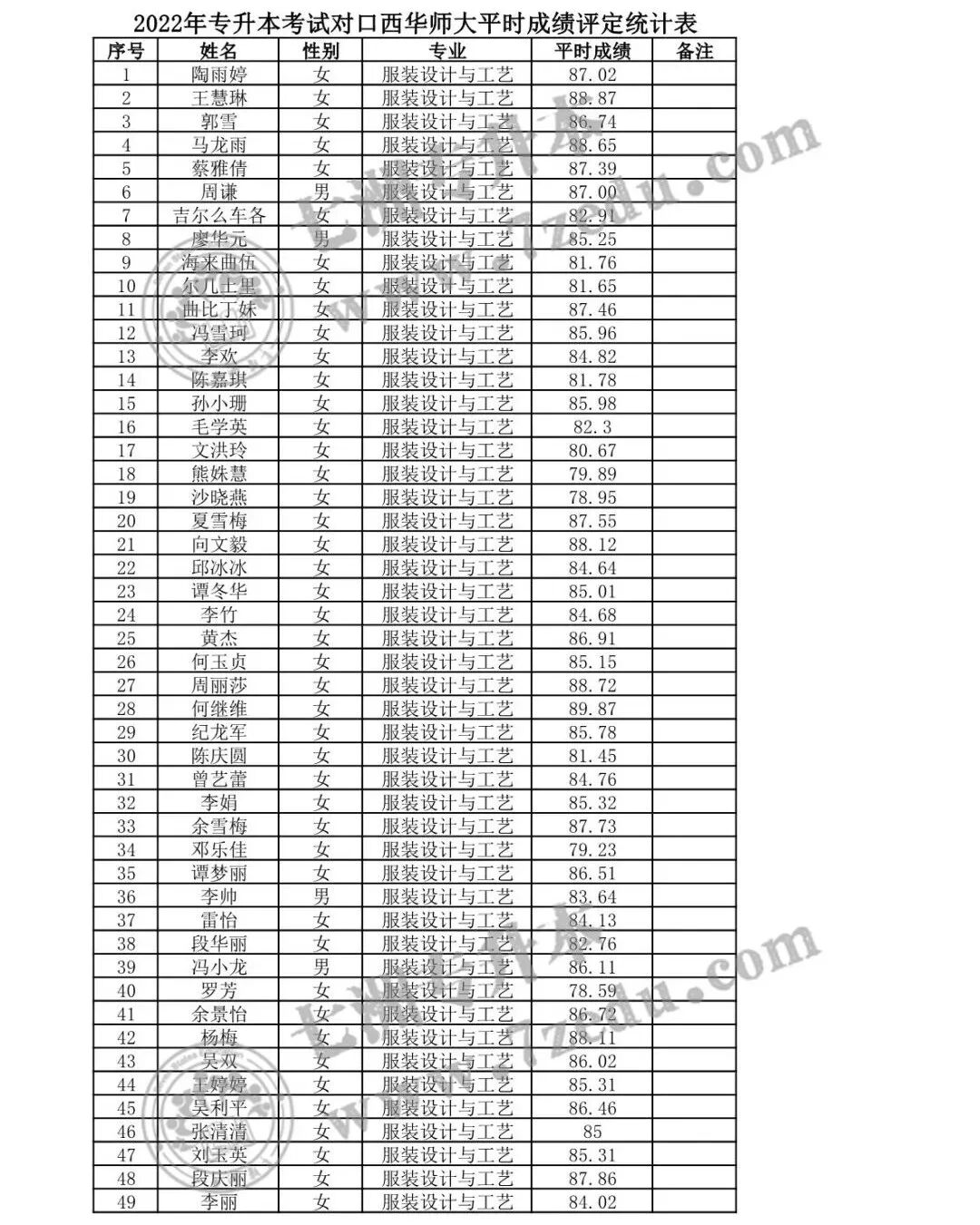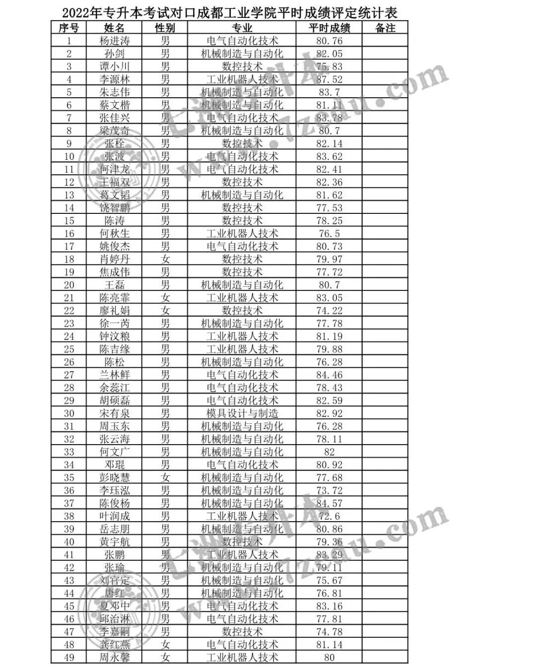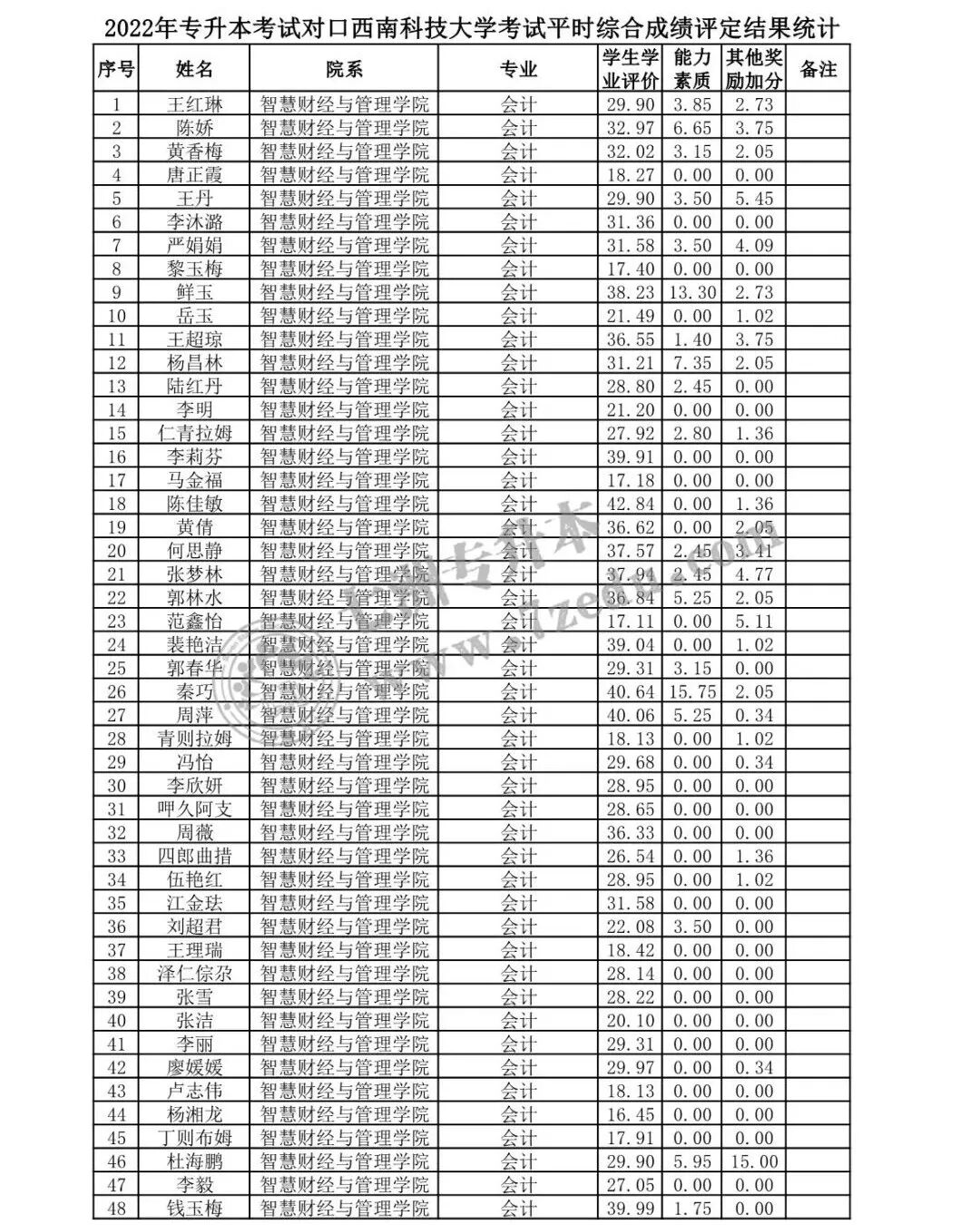 1. 2022年专升本对口西南科技大学平时综合成绩评定结果统计表
