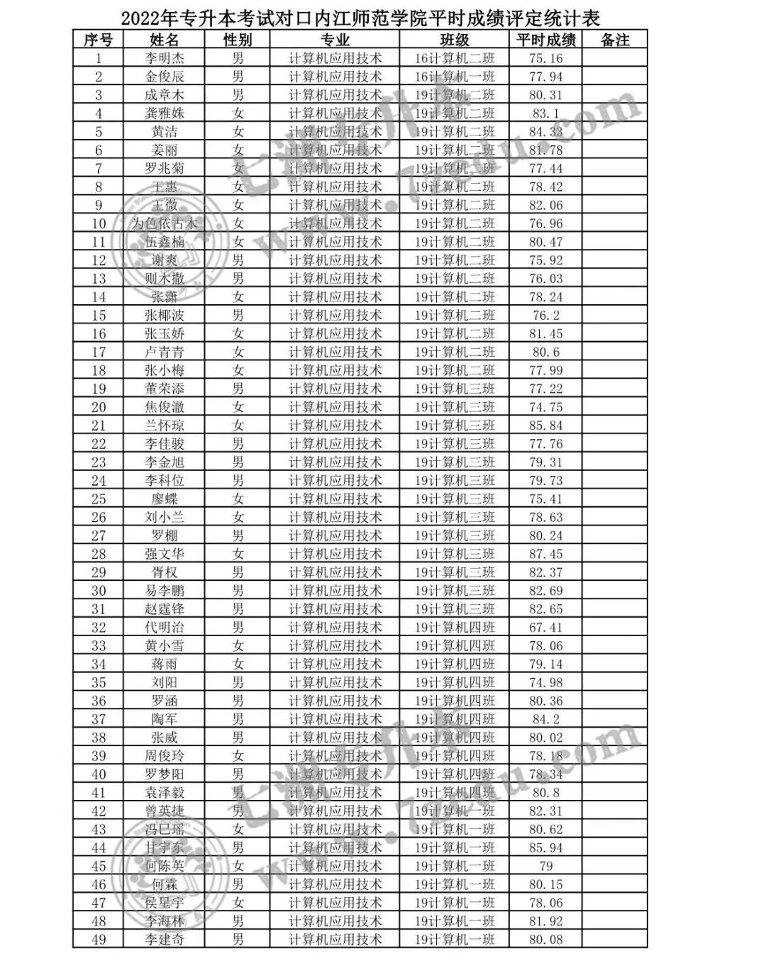 专升本考试平时成绩评定结果公示