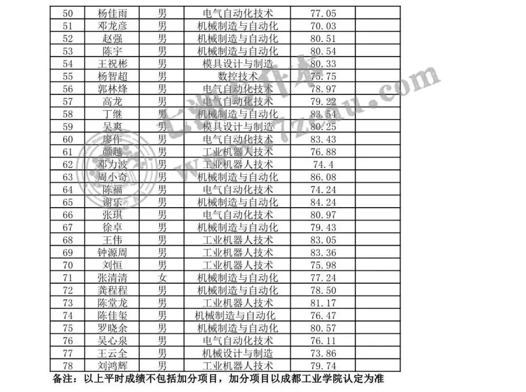 1. 对口成都工业学校平时成绩评定统计表