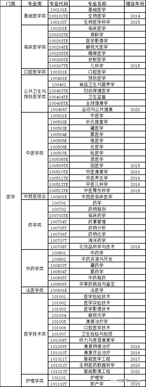 2021年版高校本科专业目录把高校专业分为12个门类:哲学、经济学、法学、教育学、文学、历史学、理学、工学、农学、医学、管理学、艺术学,94个专业大类,740个具体专业。