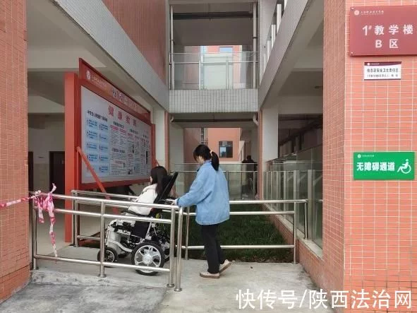 考虑到陈晨的特殊情况,学校特意将陈晨所在的班级调整到一楼第一间教室,同时将陈晨的寝室也安排在一楼第一间,便于她出行和上课。高二下学期,学校老师给陈晨买了电动轮椅,爱心企业出资在教学楼、寝室等地修建了三处无障碍通道。不仅方便了陈晨,也让张彩虹轻松不少。张彩虹说:“现在主要是上下楼梯要背她,在平路上陈晨可以坐电动轮椅,我就在旁边陪着她走,以免有人不小心撞到她。”