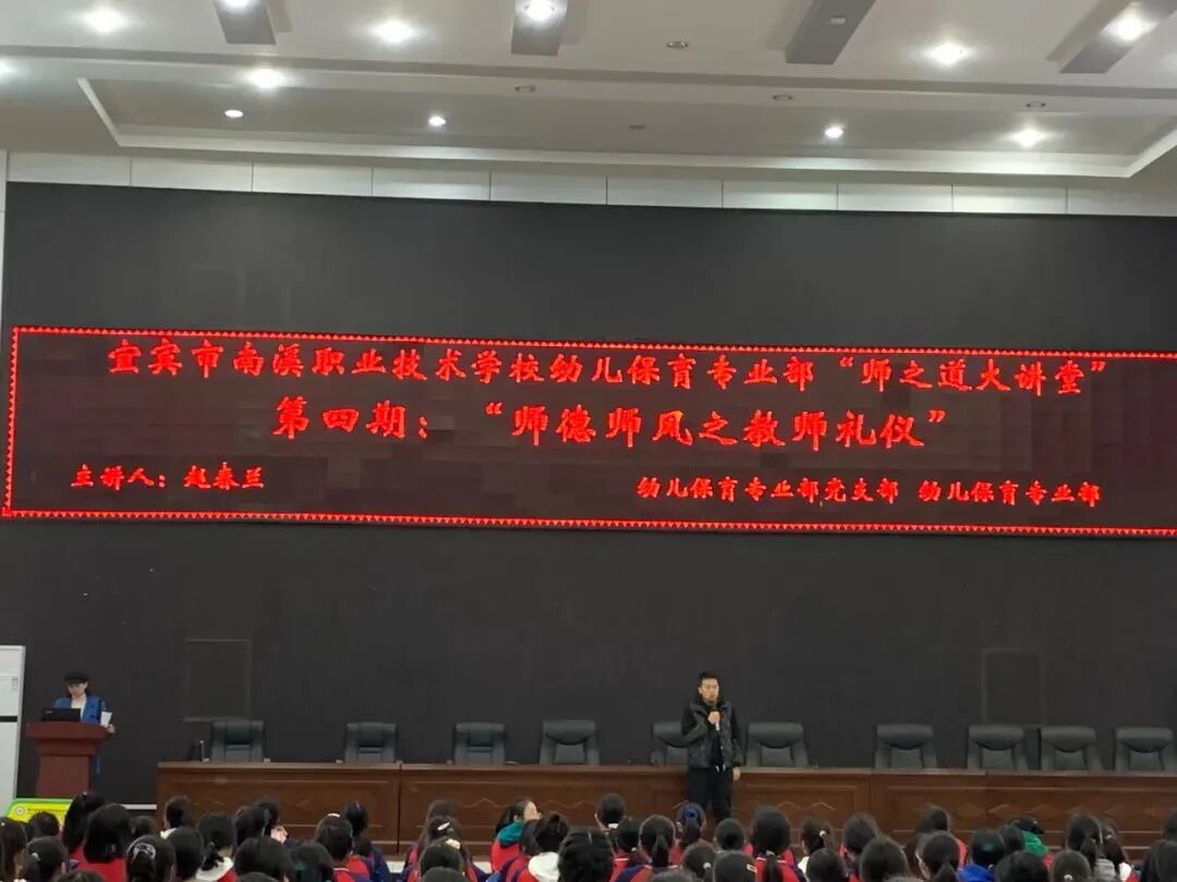 3月2日,幼儿保育专业部在阶梯教室开展第四期“师之道大讲堂”——主题是“师德师风之教师礼仪”。